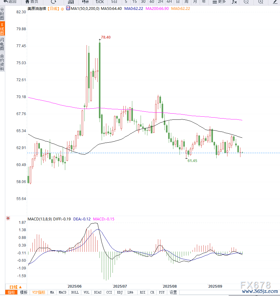 好意思原油日线图泄露价钱在集合下逾期于62好意思元隔邻赢得因循,短期走势保管在区间颤动表情中。下方60—62好意思元区间组成要紧因循,若跌破将加大下探压力;